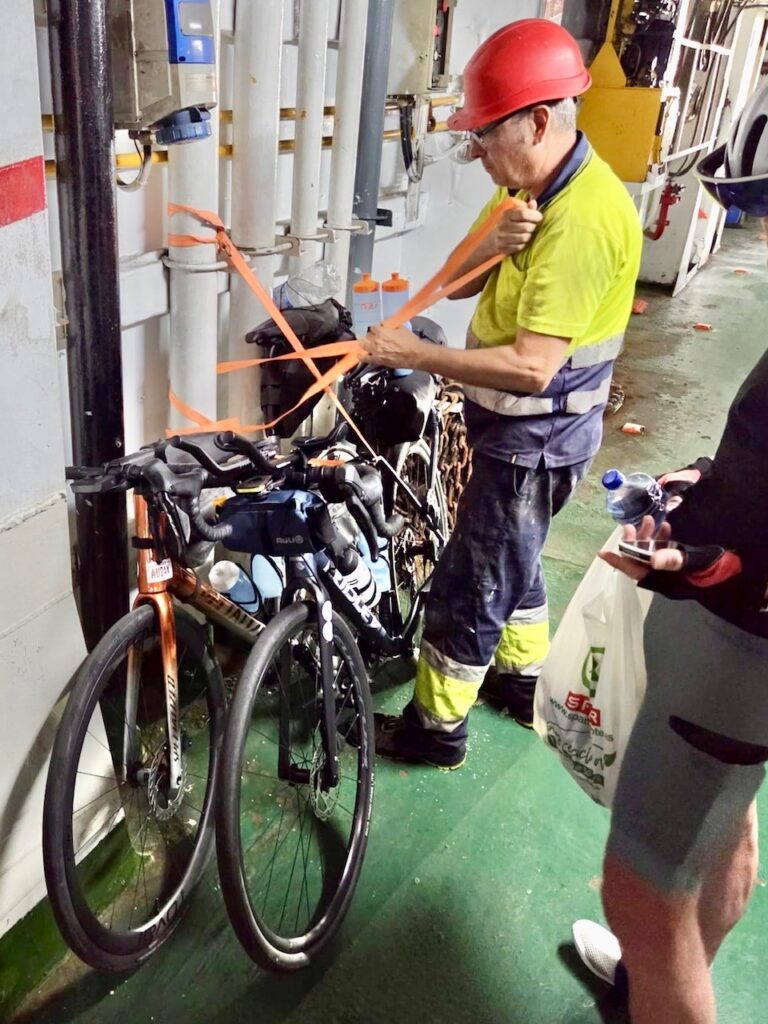 Lanzarote mit 115 km und 1.800 hm liegen hinter mir, das Rad ist fachmännisch festgezurrt und die Fuerteventura Fähre ist unterwegs.