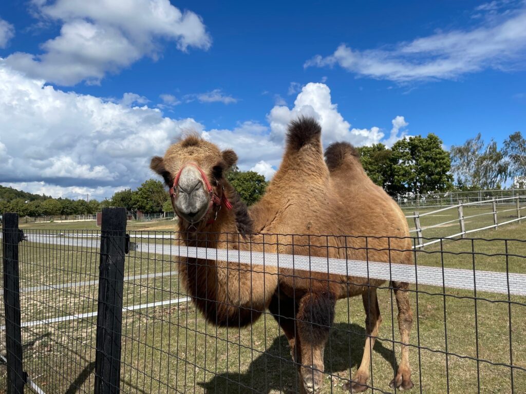 Auf dem nun folgenden Weg nach Wernborn machten die Radler einen ausführlichen Halt am Talhof, denn hier konnten in einem großen einzäunten Gehege Esel, Ziegen, Alpakas und sogar Trampeltiere bestaunt werden.